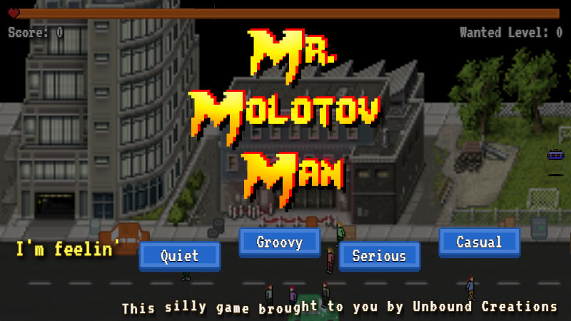 Working on HEADLINER, story driven game about controlling public opinion and sparking a riot, accidentally led to the realization “Molotovs are fun!” Needless to say, a little spin-off was born.