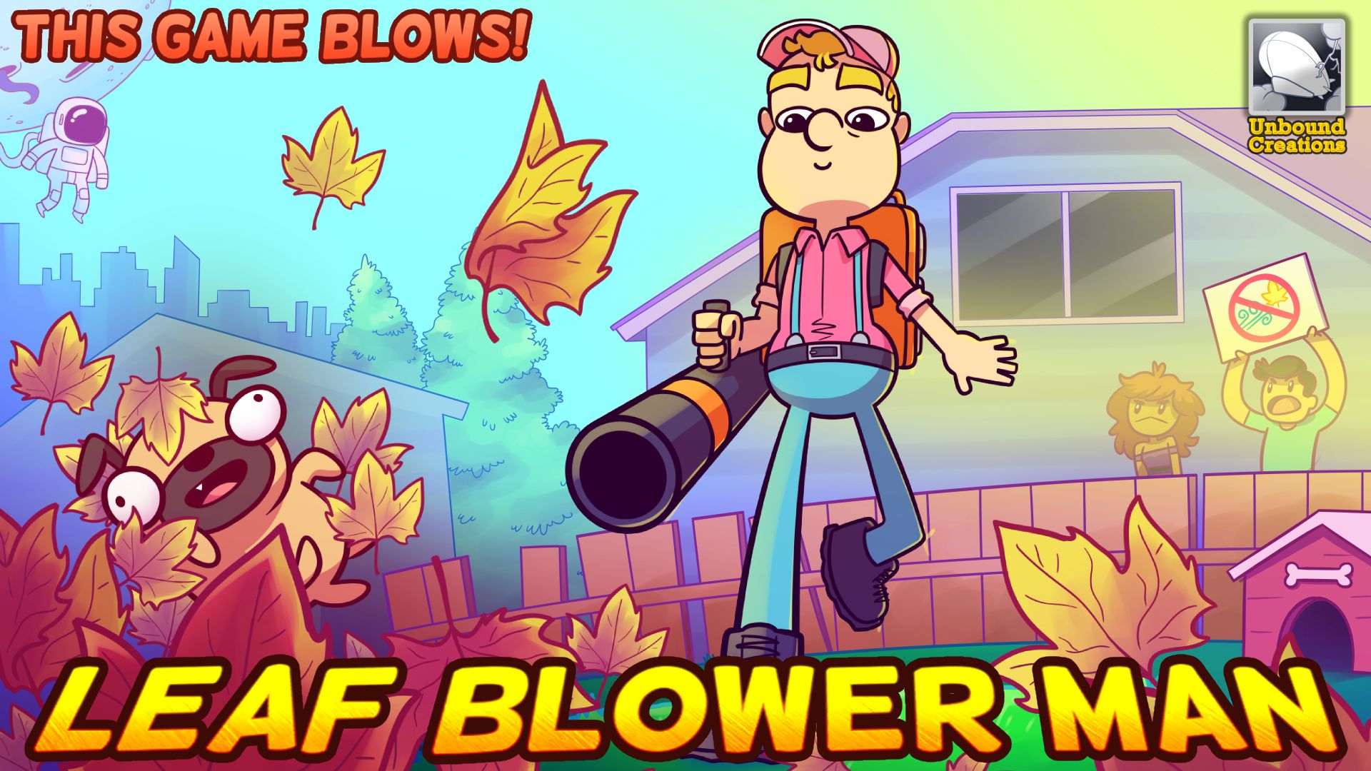 Leaf Blower Man: This Game Blows! is an arcade-action game. Not only will you pointlessly blow leaves from one end of the driveway to the other, you will also earn points by annoying the heck out of your neighbors! A dramatic story will lead you through a variety of environments and challenges; perhaps you might even save humanity?